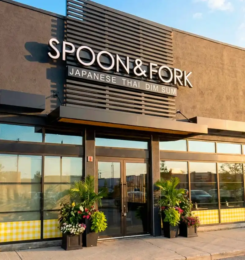Spoon & Fork 是以日、泰、越、中式融合料理的「任點任食」(All You Can Taste)模式聞名,在大多倫多地區(GTA)及周邊城市擁有多家分店,提供從新鮮壽司、刺身到泰式咖哩、冬蔭功及西式牛排的多樣化選擇,並以現代風格的裝潢與精緻的點餐服務吸引家庭與團體聚會。